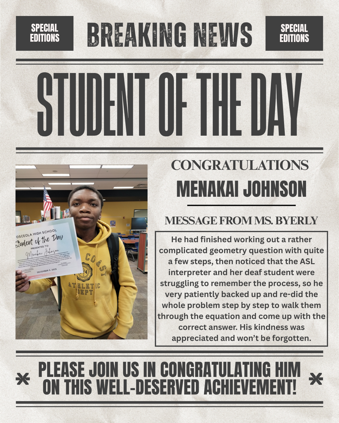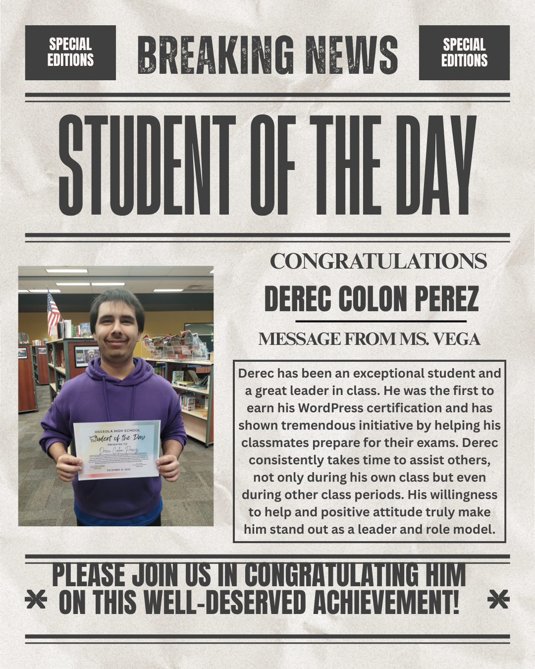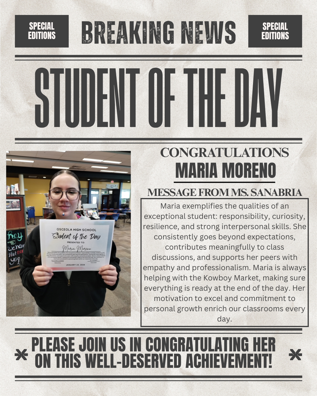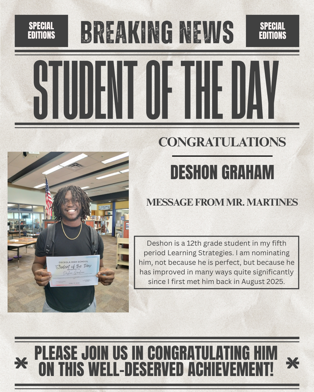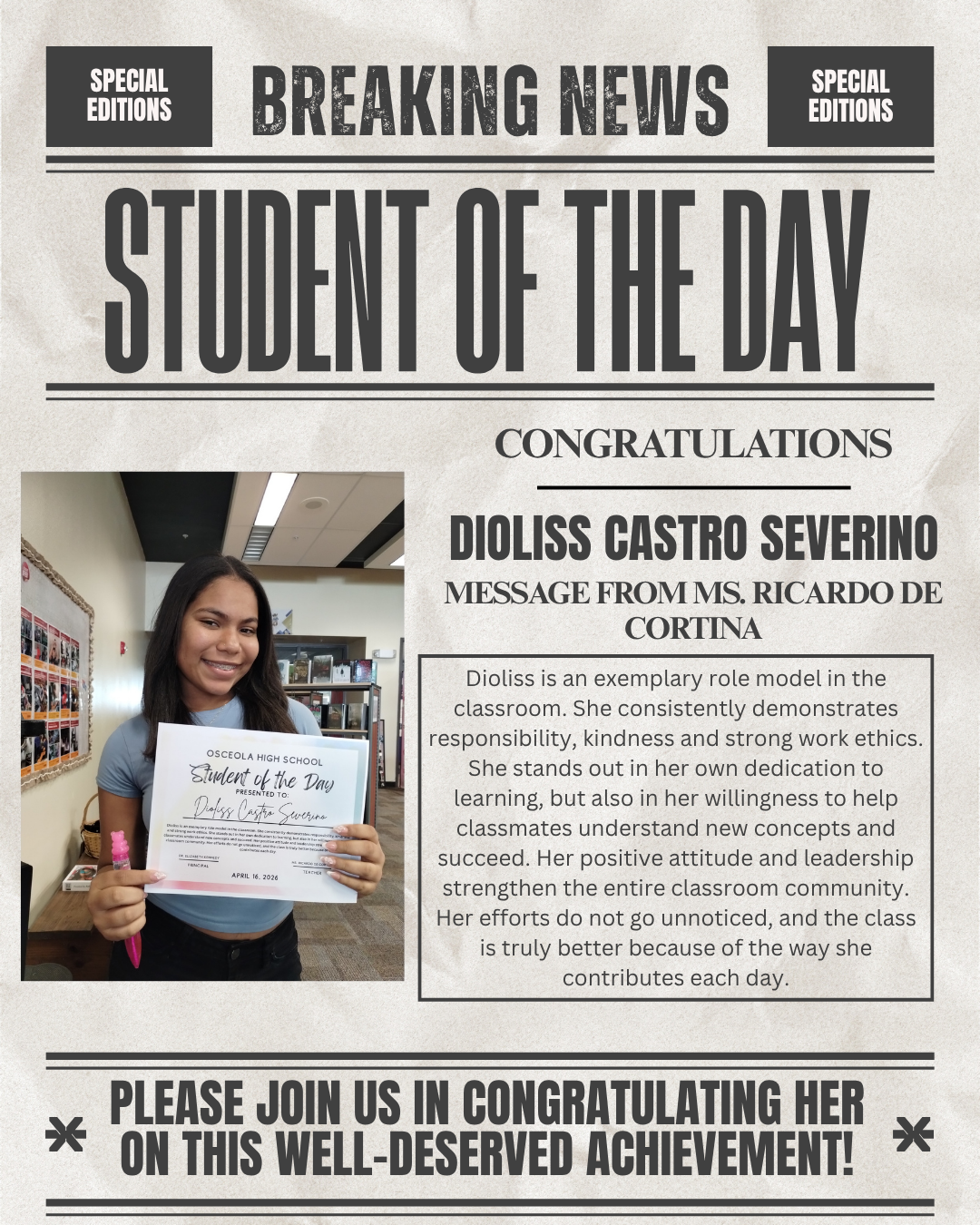 Stay up to date on the latest news from Osceola High and the Osceola County School District!