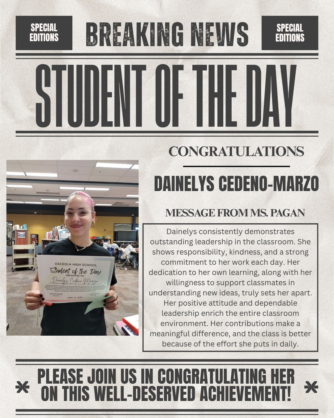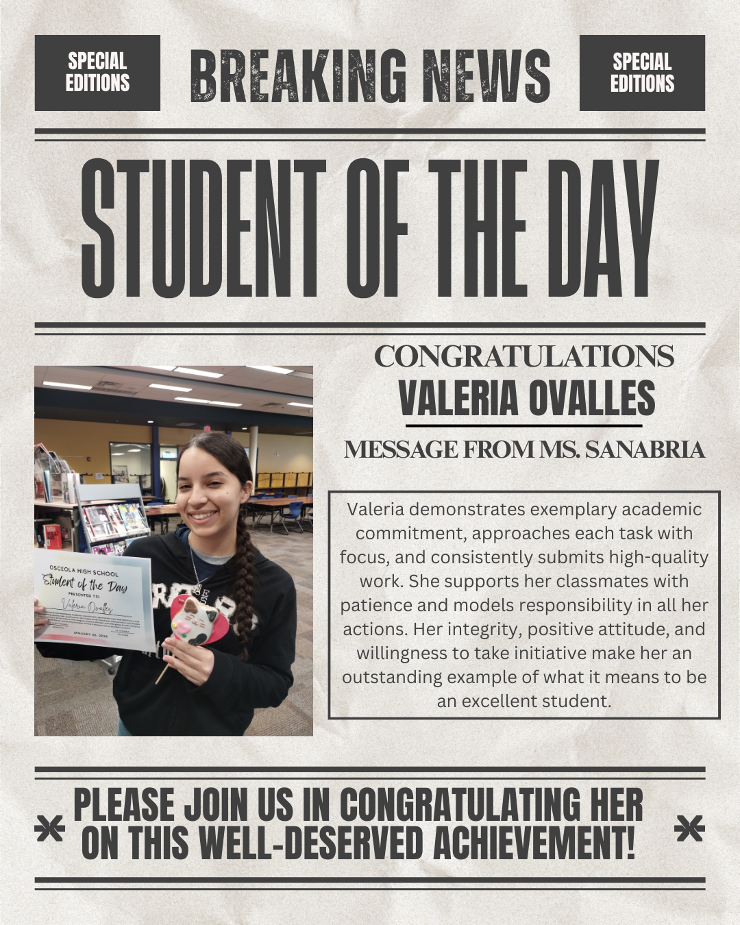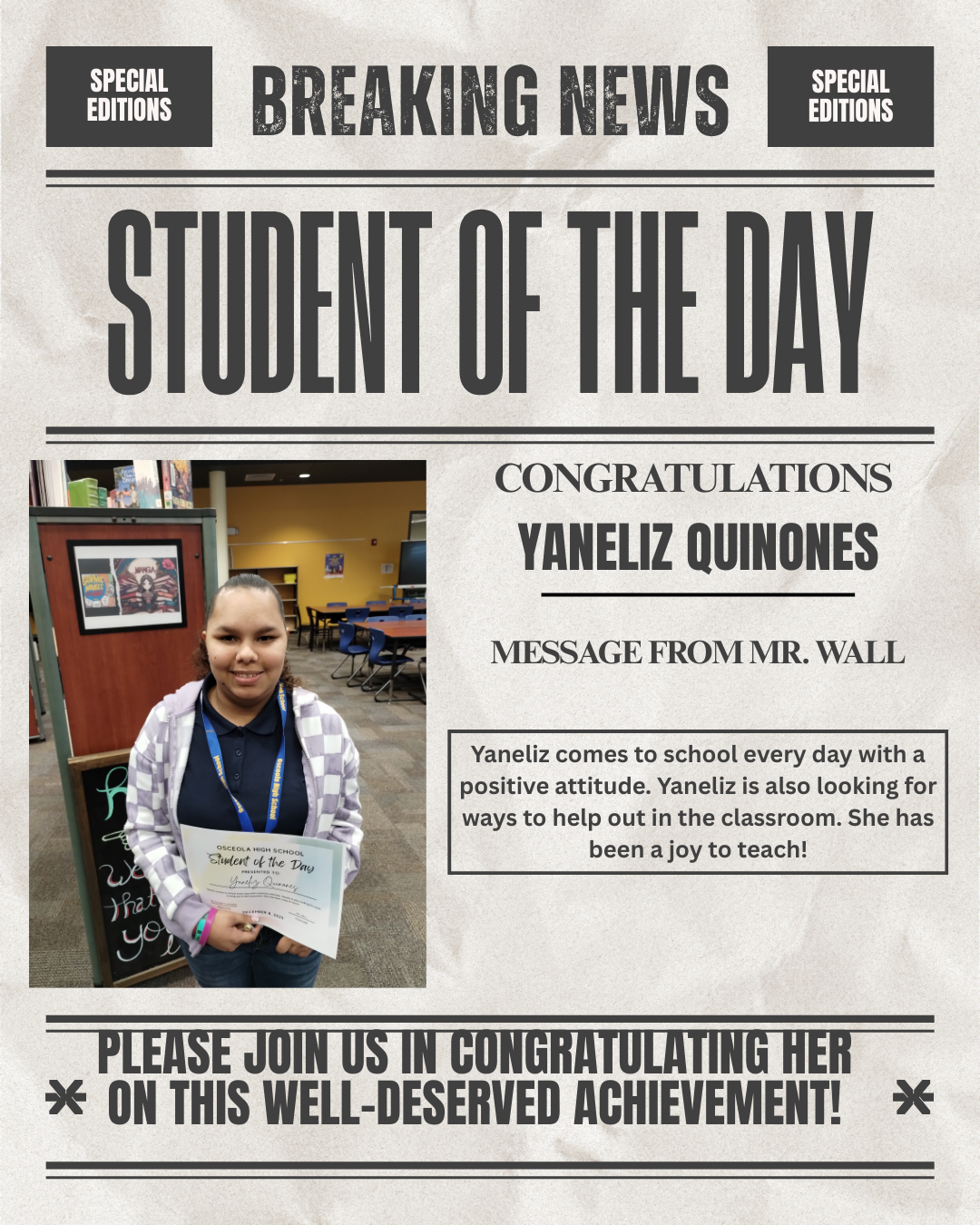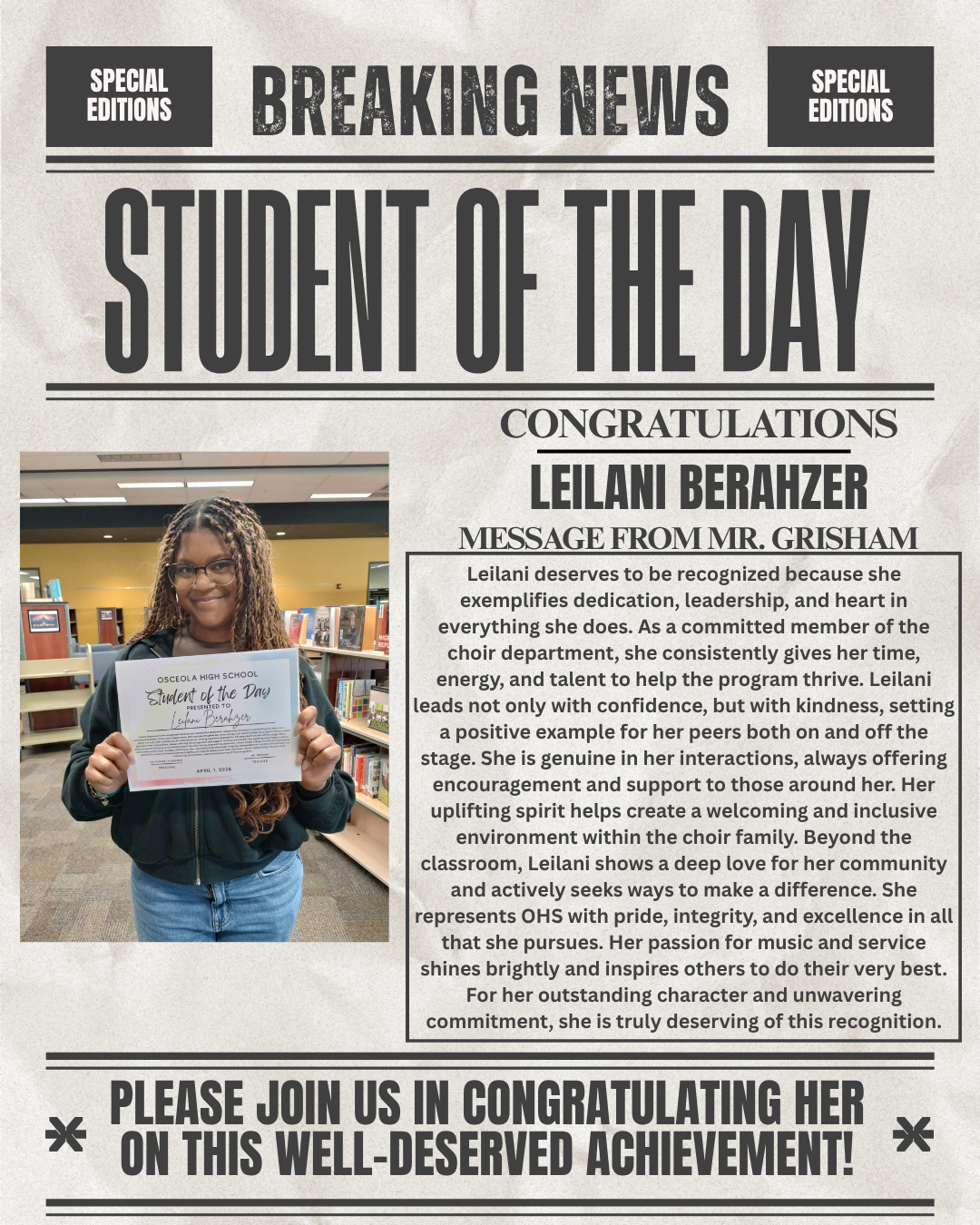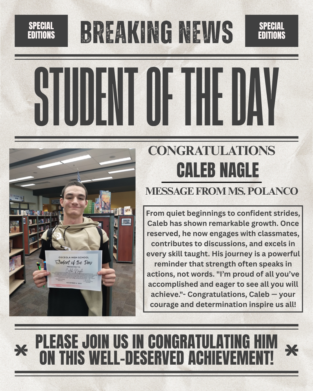 Stay up to date on the latest news from Osceola High and the Osceola County School District!