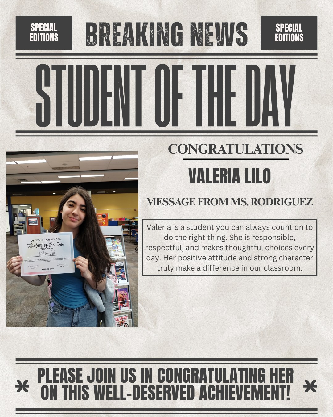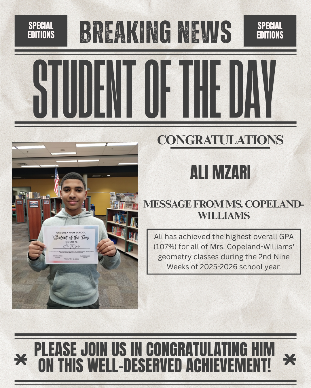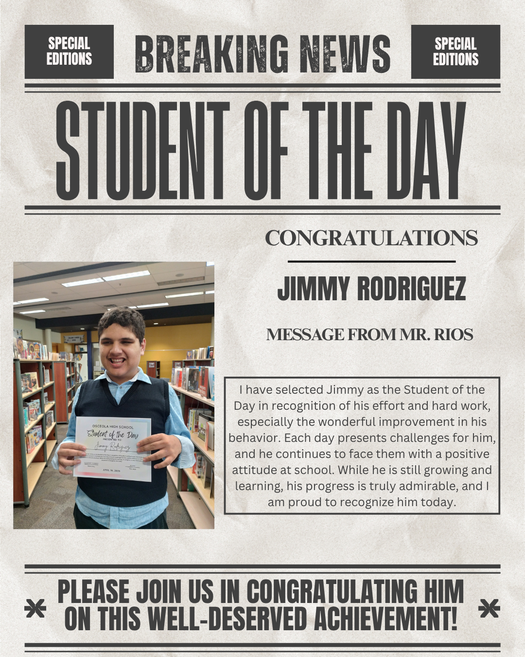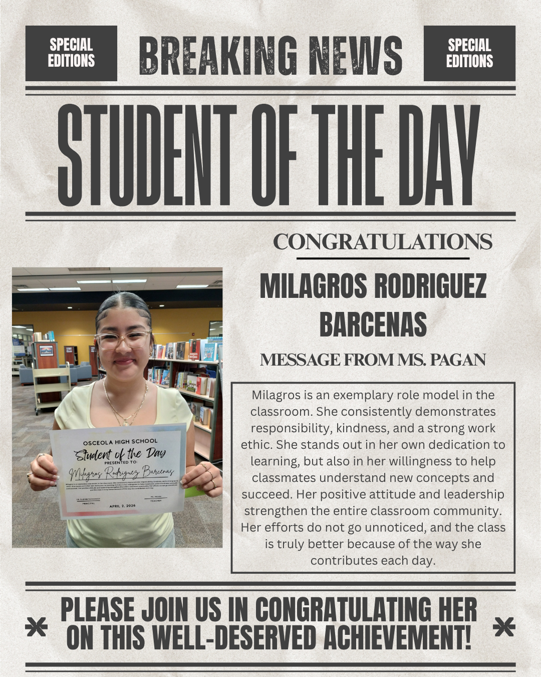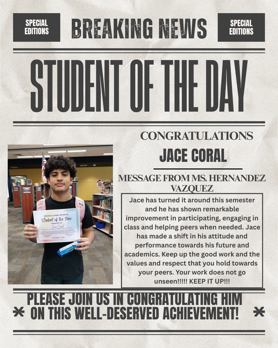 Stay up to date on the latest news from Osceola High and the Osceola County School District!