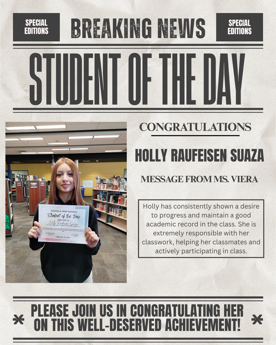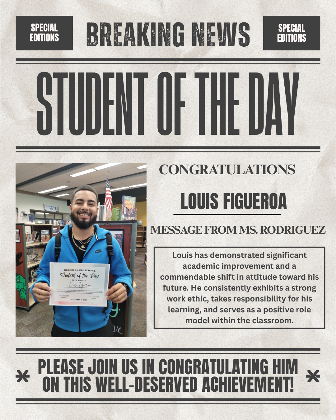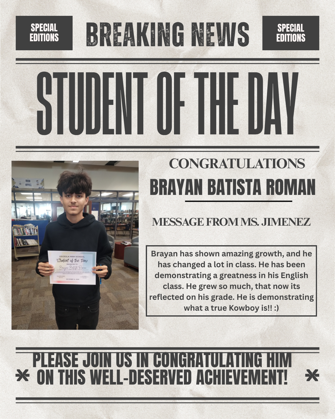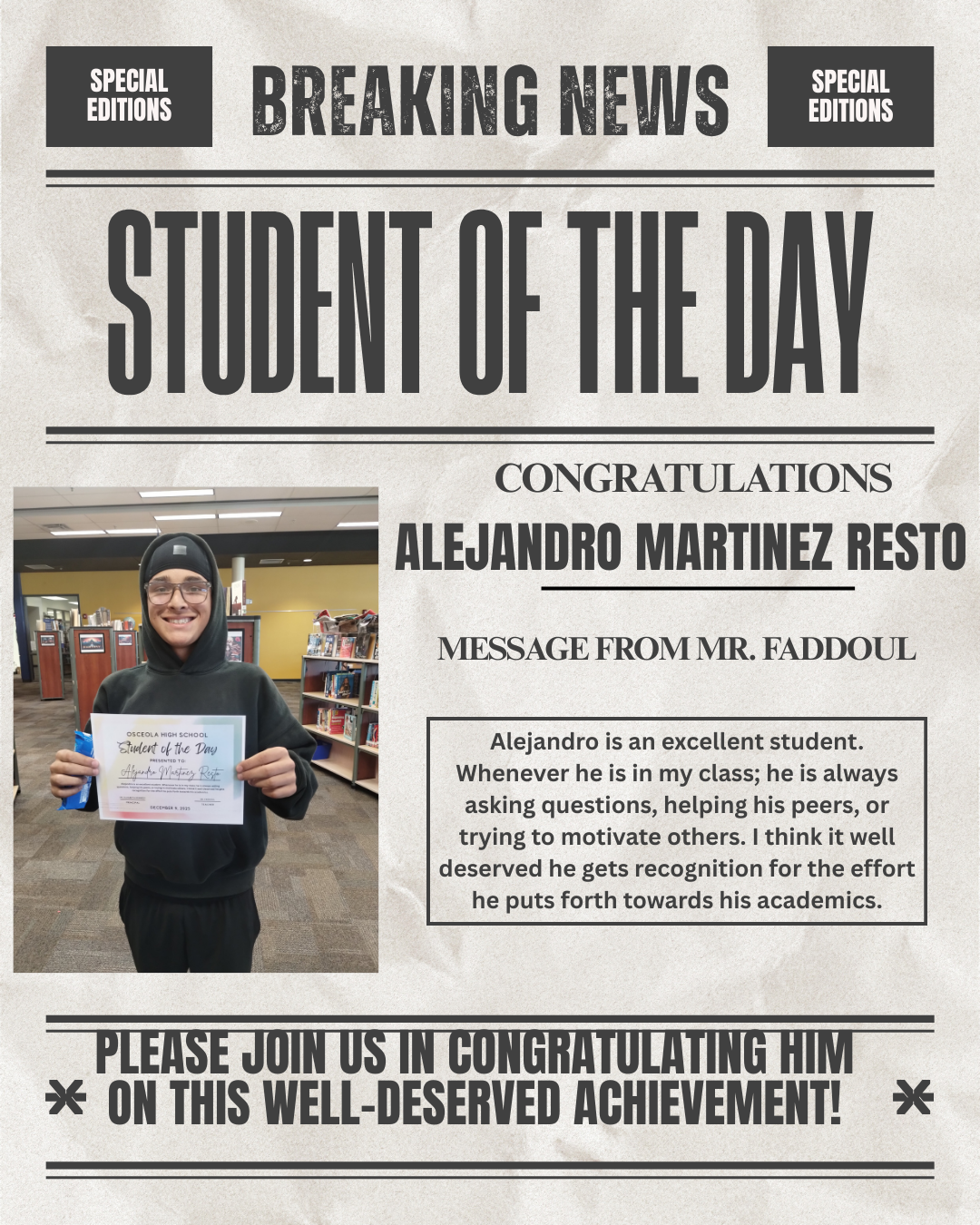 Stay up to date on the latest news from Osceola High and the Osceola County School District!