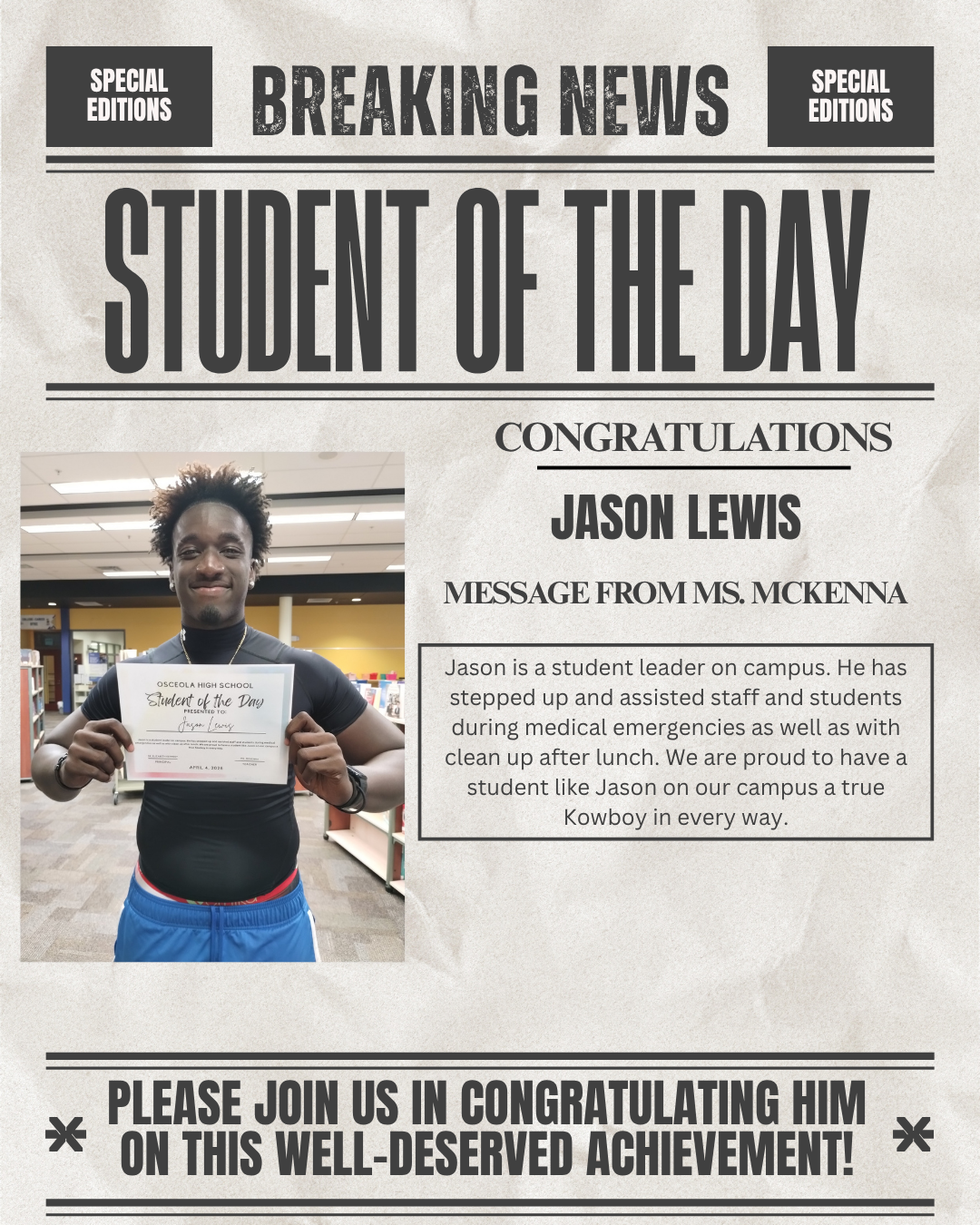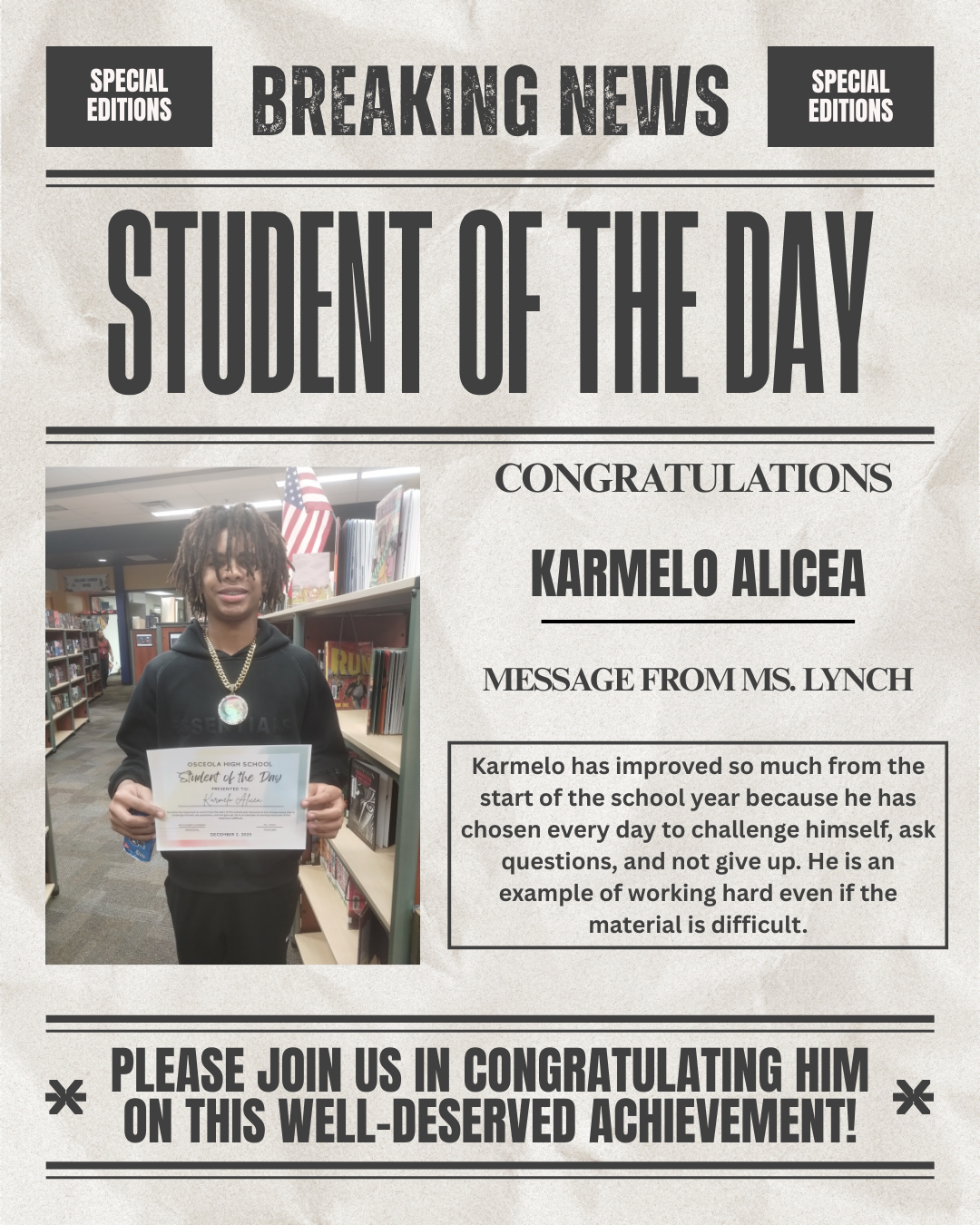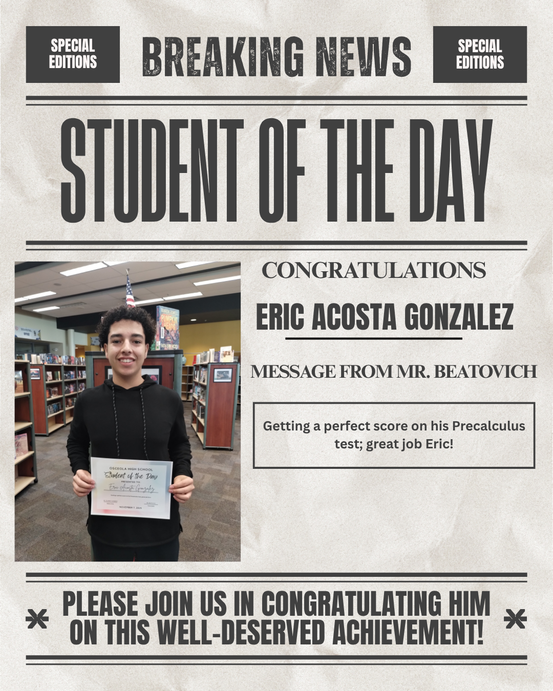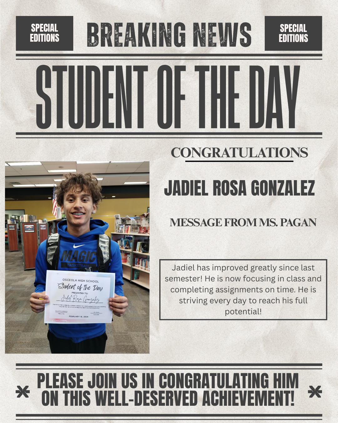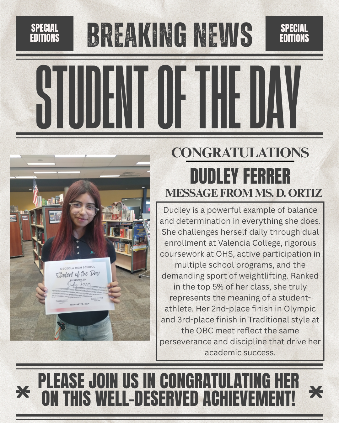 Stay up to date on the latest news from Osceola High and the Osceola County School District!