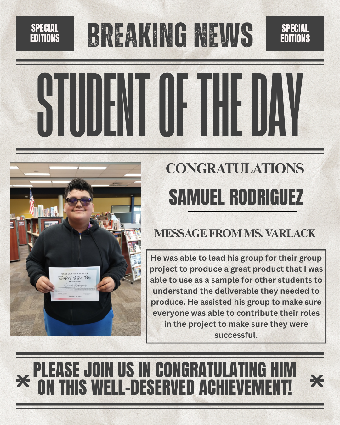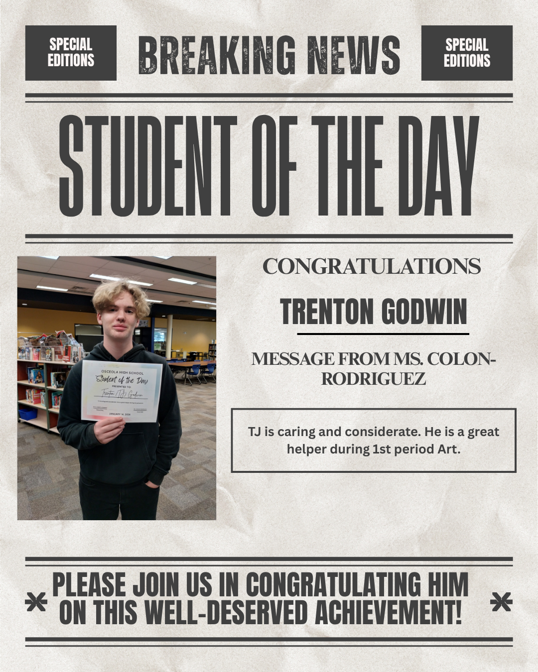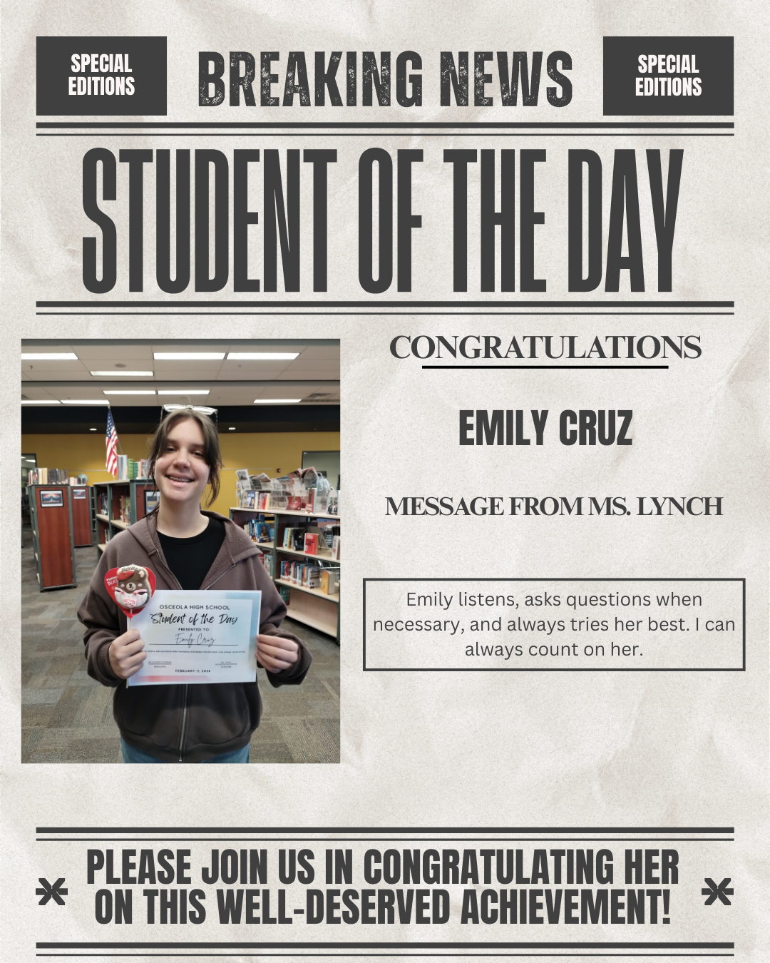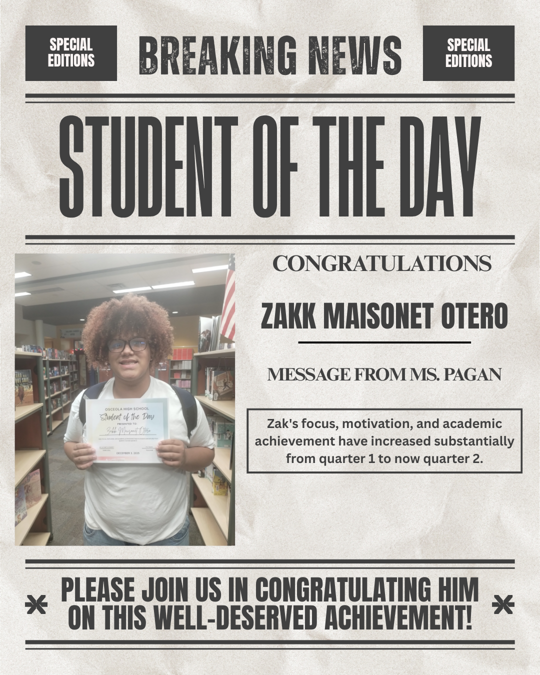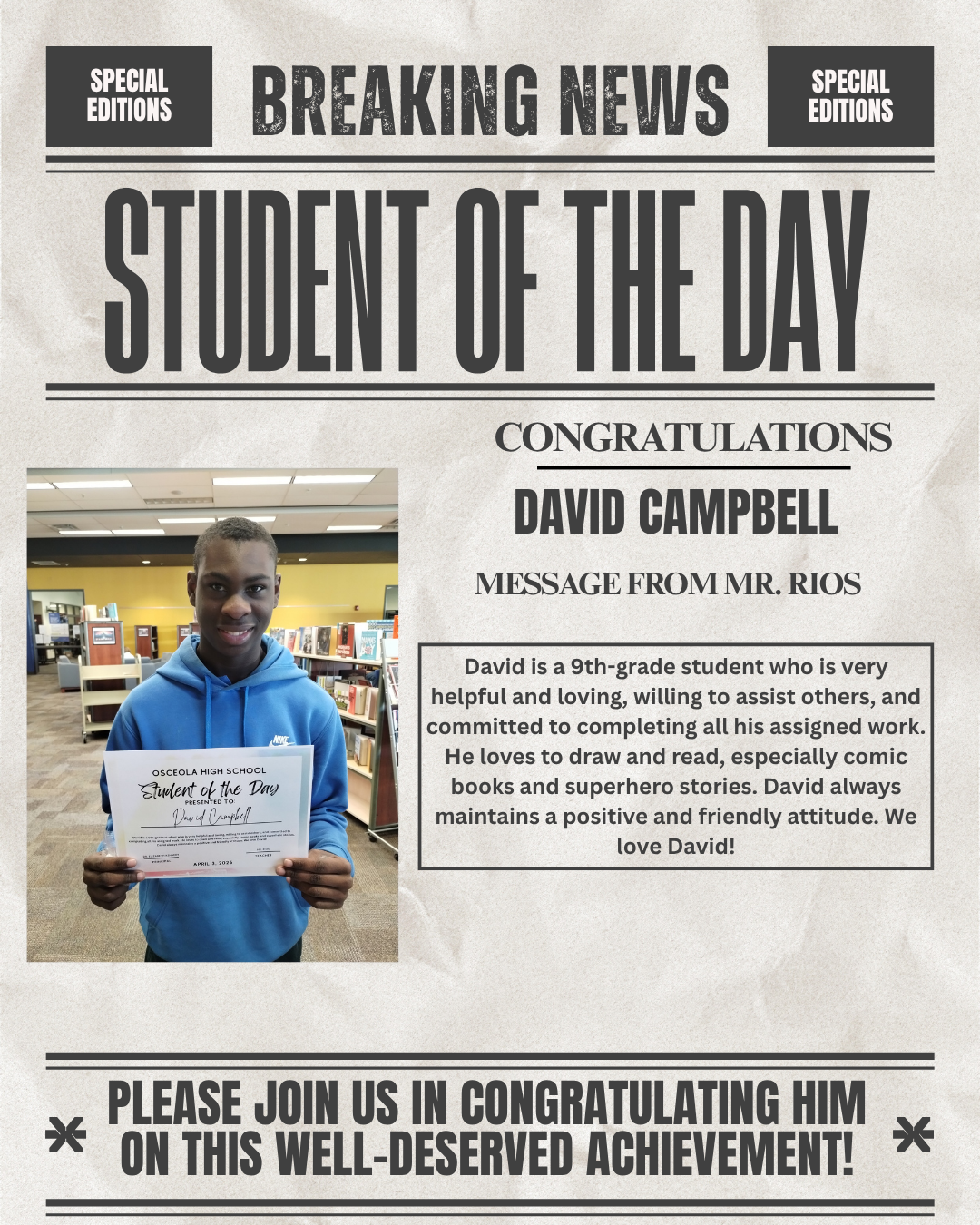 Stay up to date on the latest news from Osceola High and the Osceola County School District!