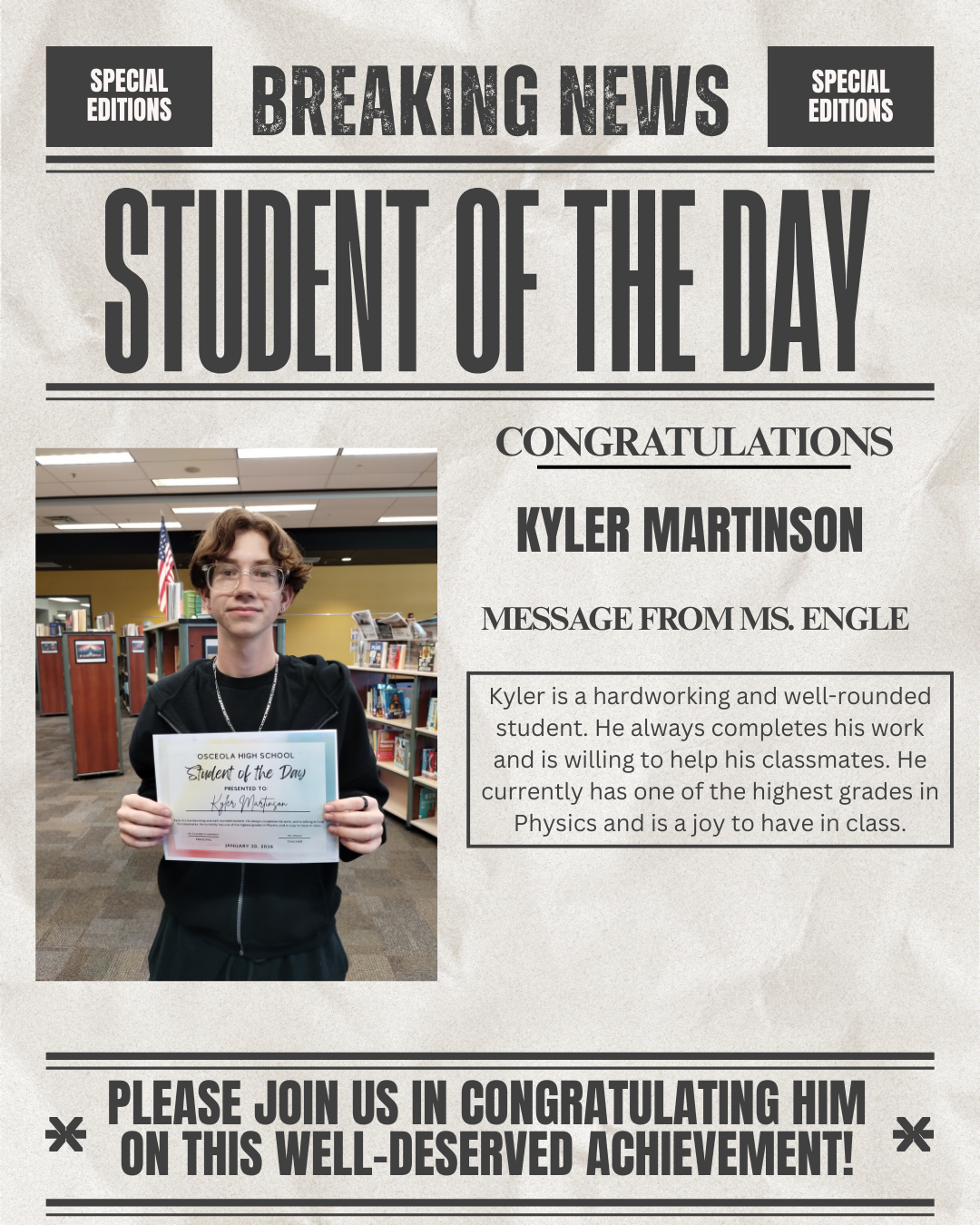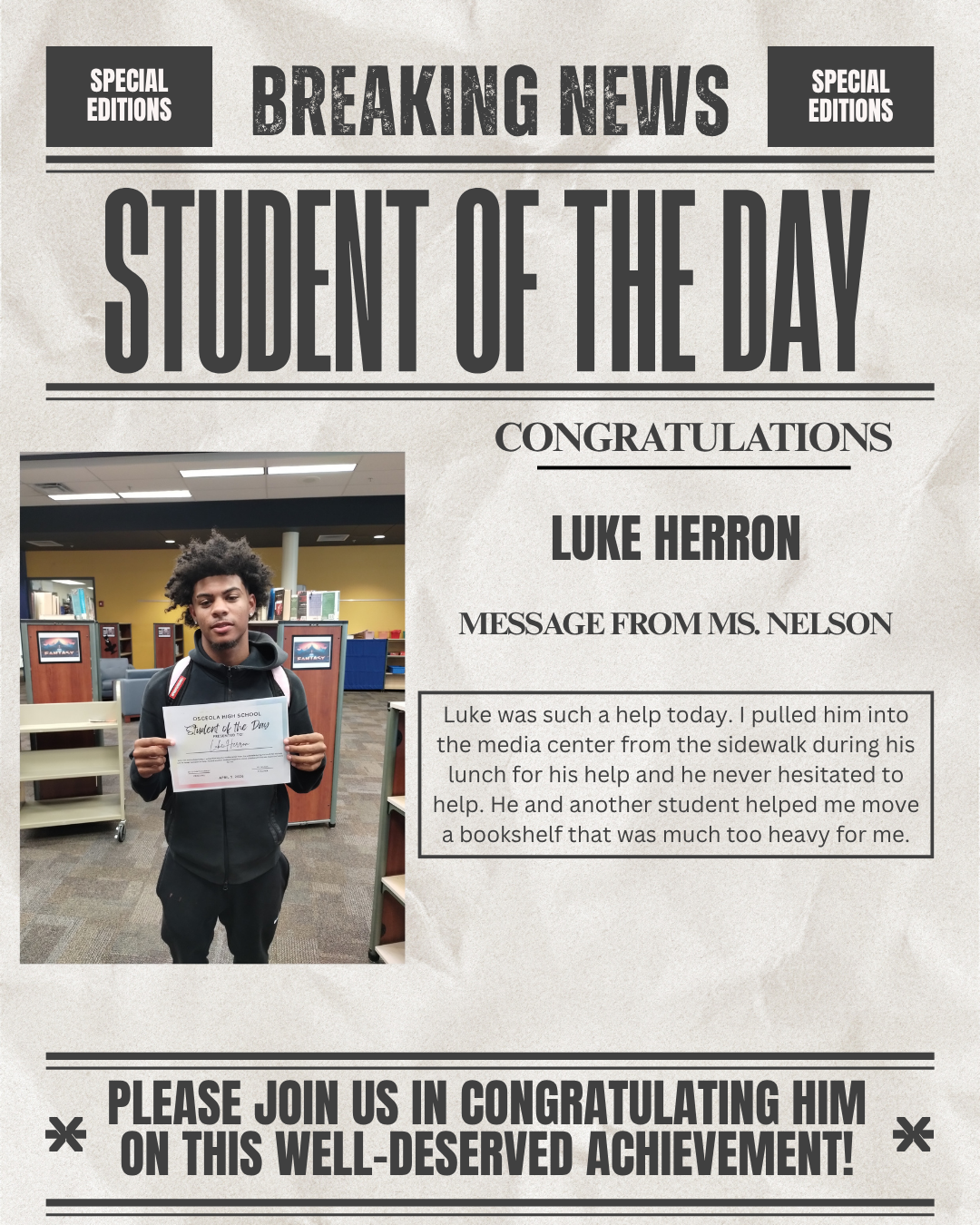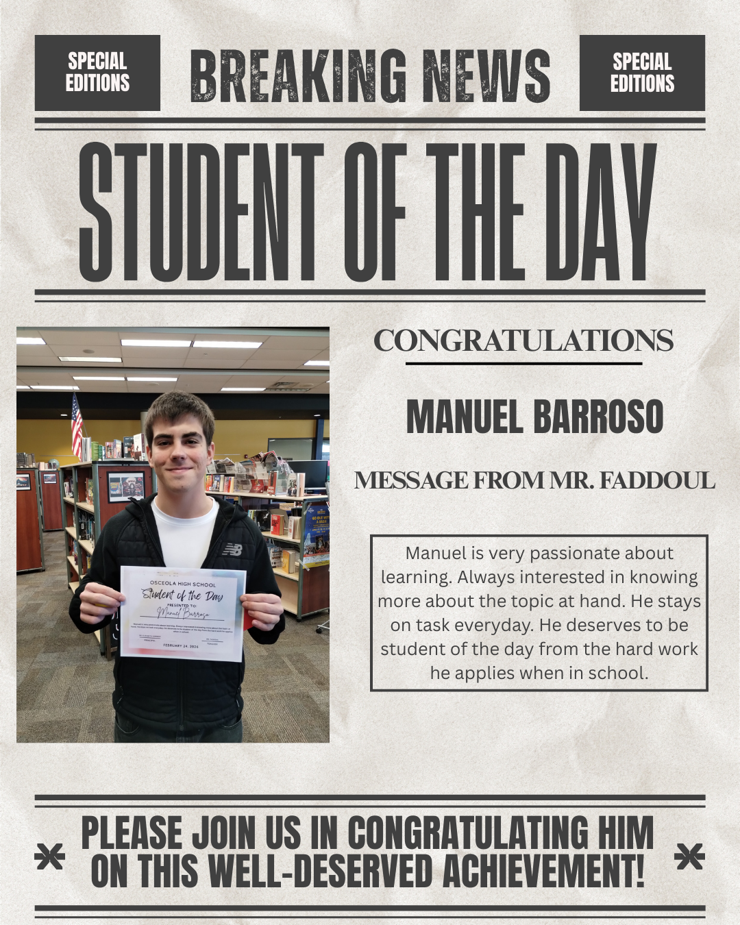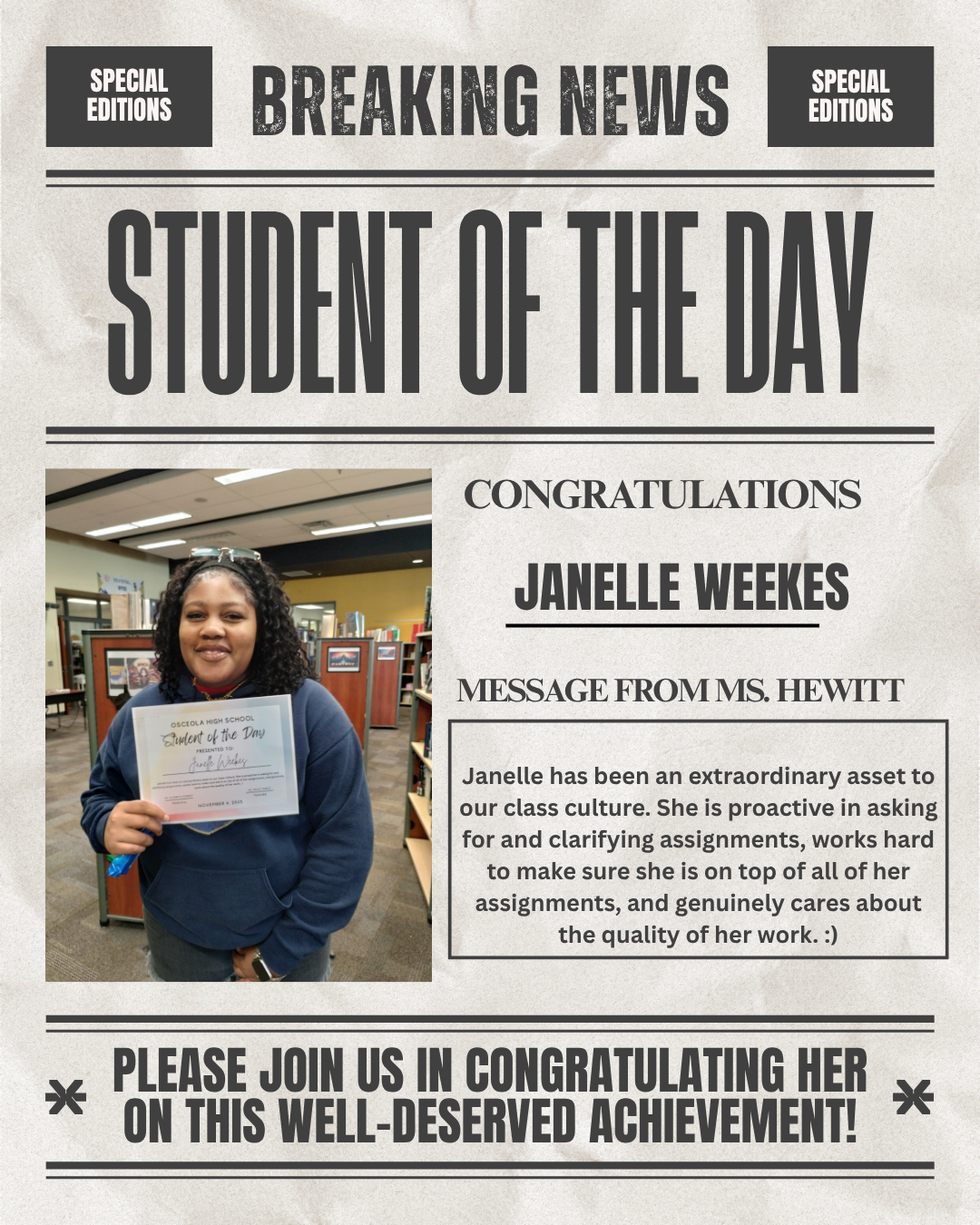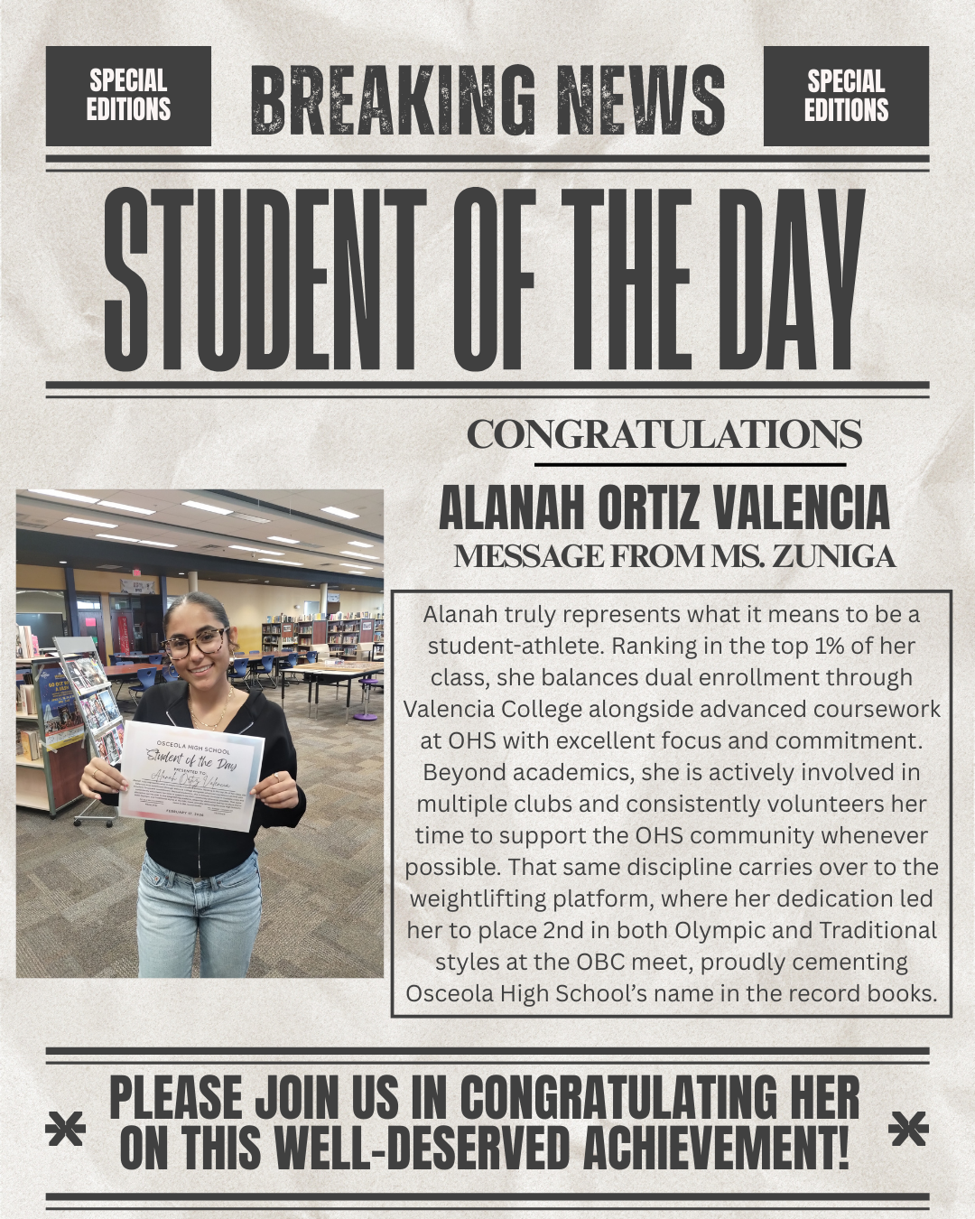 Stay up to date on the latest news from Osceola High and the Osceola County School District!