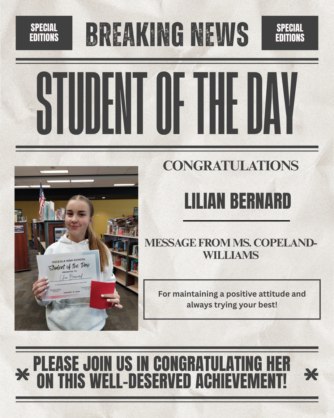 Stay up to date on the latest news from Osceola High and the Osceola County School District!