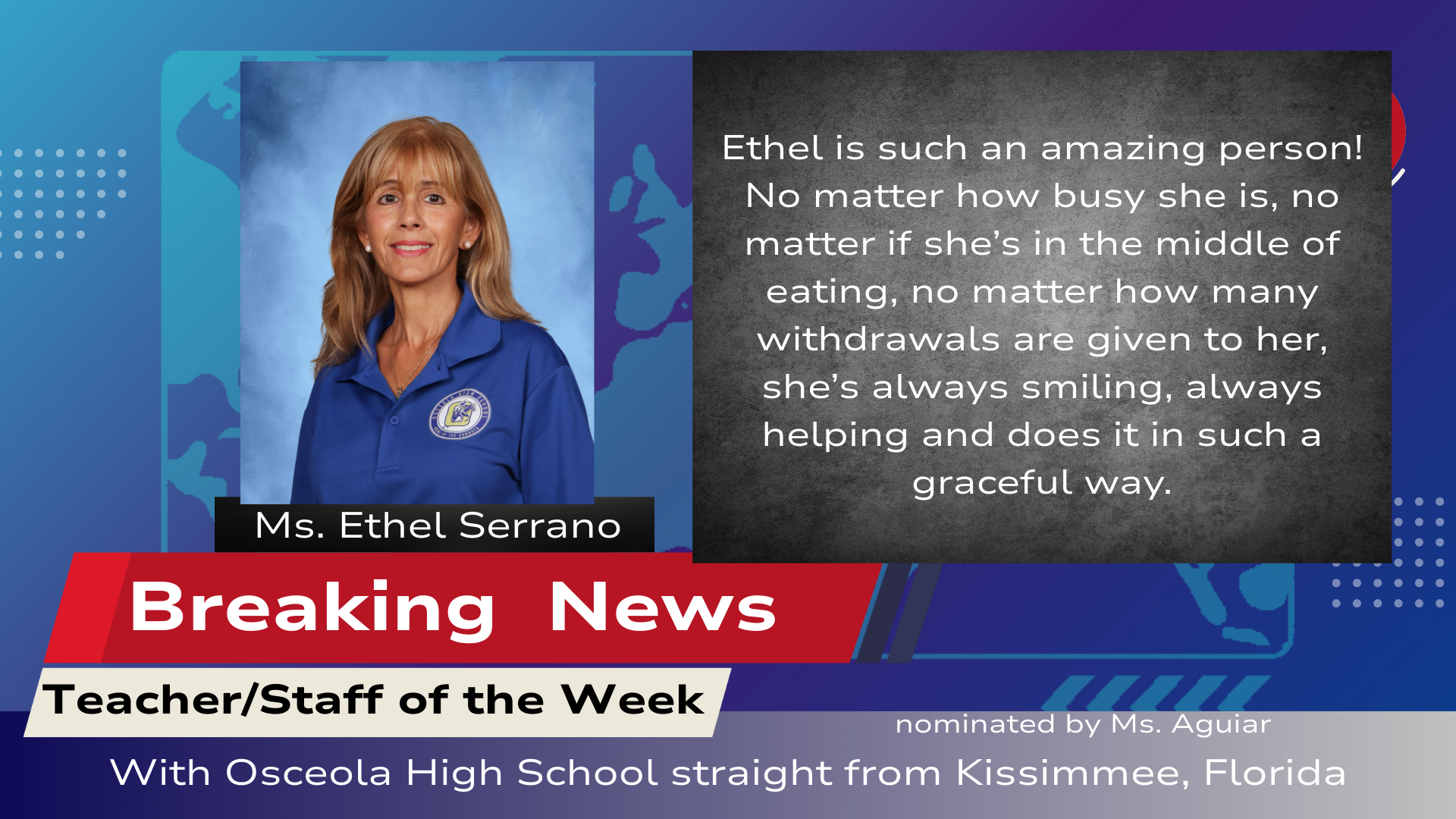 Congratulations to Ms. Serrano for being our "Teacher/Staff of the Week" this week!
